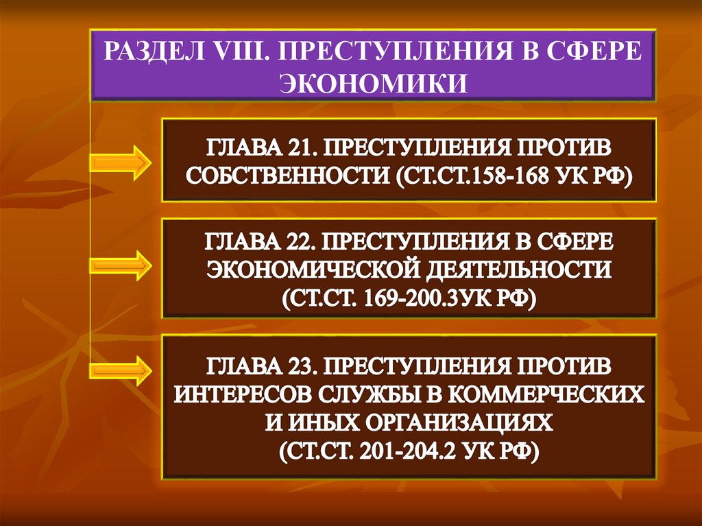 РАЗДЕЛ VIII. ПРЕСТУПЛЕНИЯ В СФЕРЕЭКОНОМИКИ