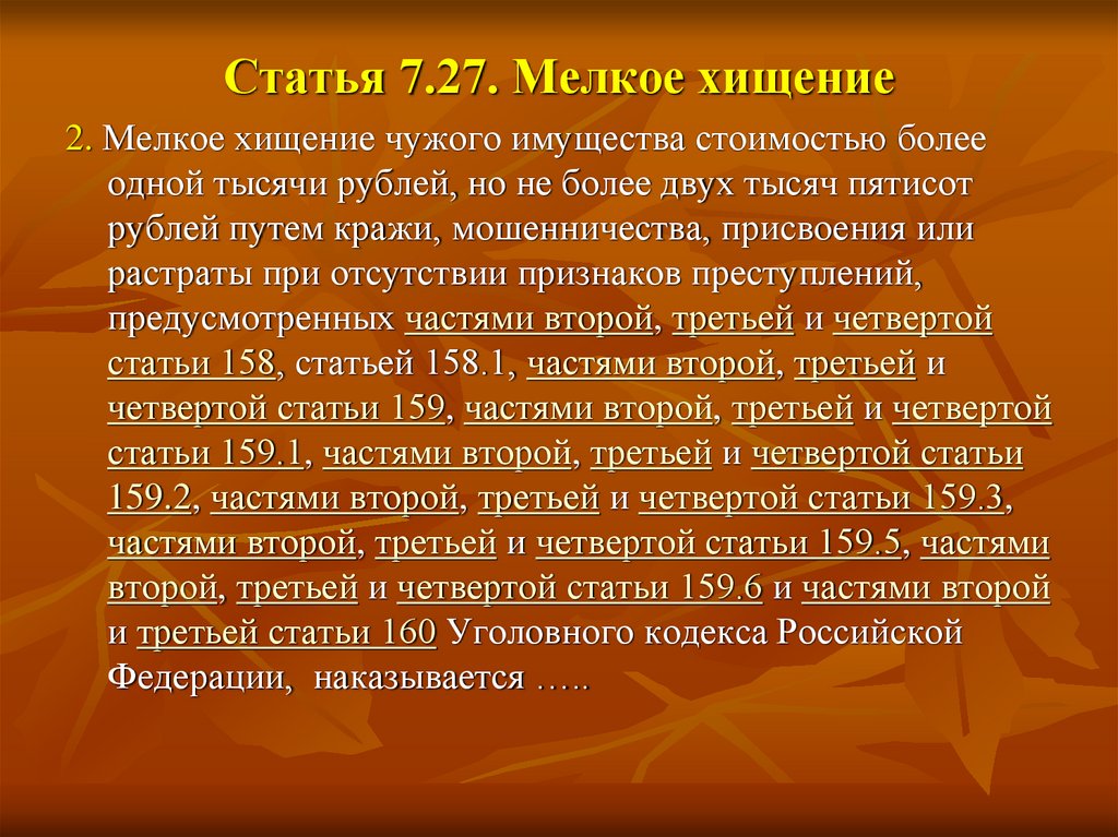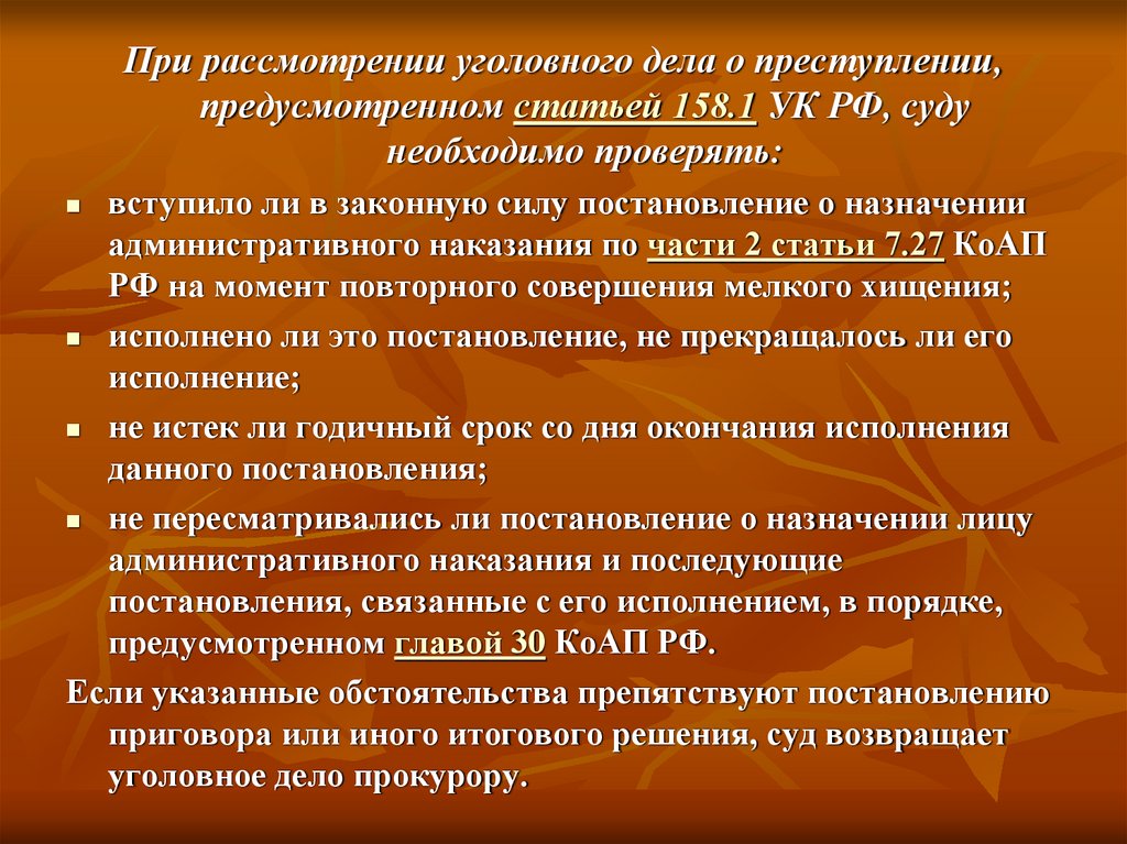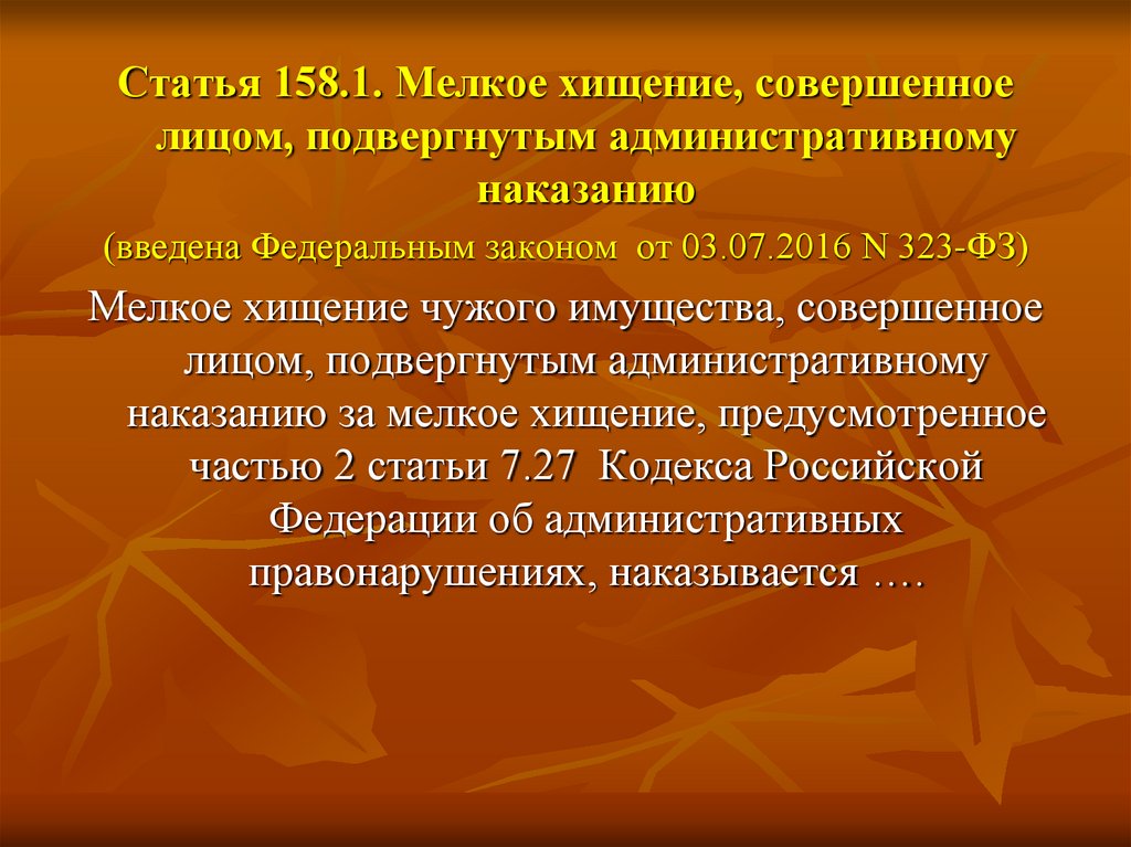 Статья 158.1 Мелкое хищение, совершенное лицом,