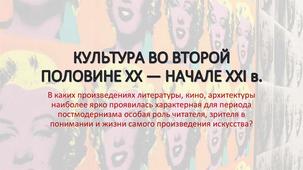 1. КУЛЬТУРА ВО ВТОРОЙ ПОЛОВИНЕ XX — НАЧАЛЕ XXI в.