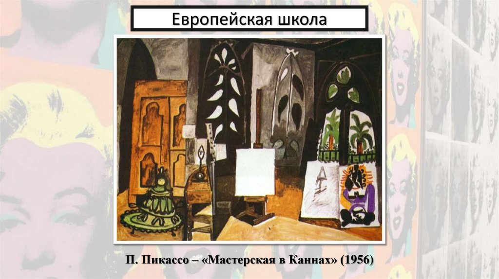 Европейская школаП. Пикассо – «Мастерская в Каннах» (1956)