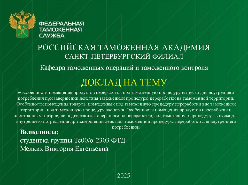 МелкихВЕ_Особенности_помещения_продуктов_переработки_под_таможенную