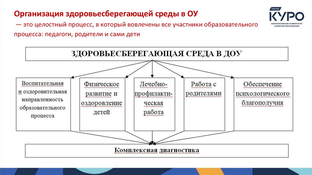 Организация здоровьесберегающей среды в ОУ— это целостный процесс, в который вовлечены все участники образовательного