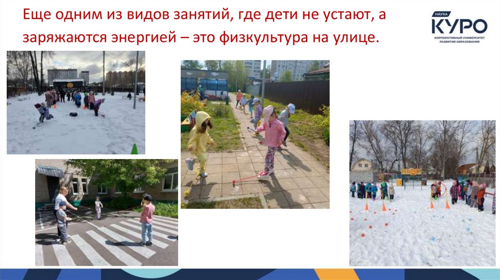 Еще одним из видов занятий, где дети не устают, азаряжаются энергией – это физкультура на улице.