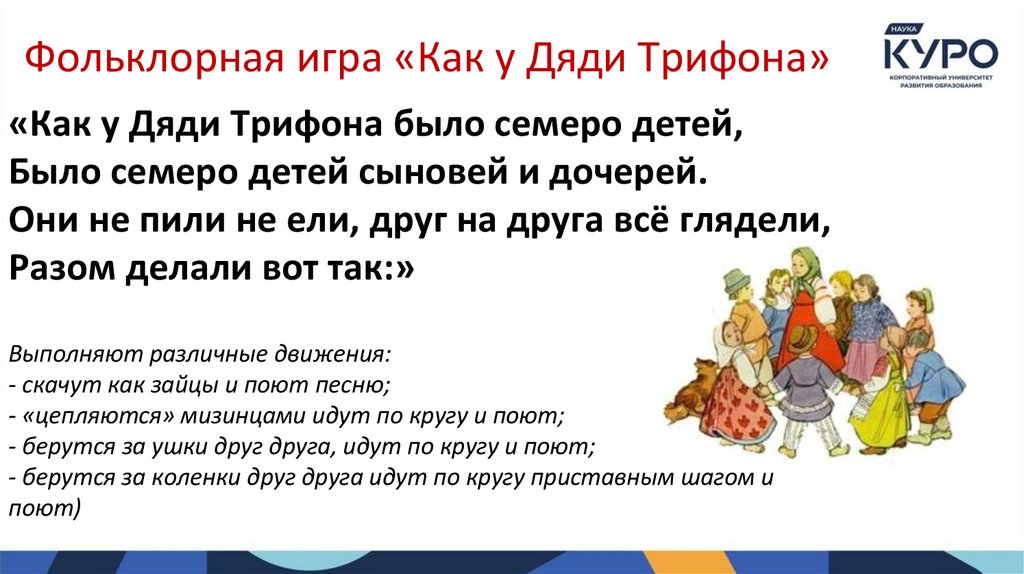 Фольклорная игра «Как у Дяди Трифона»«Как у Дяди Трифона было семеро детей,