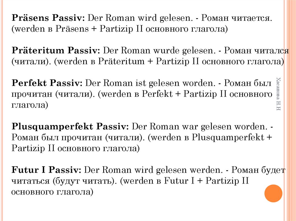 Perfekt Passiv: Der Roman ist gelesen worden. - Роман был