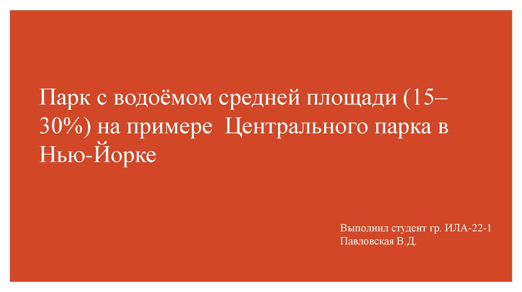 1. Парк с водоёмом средней площади (15–30%) на примере Центрального парка в Нью-Йорке