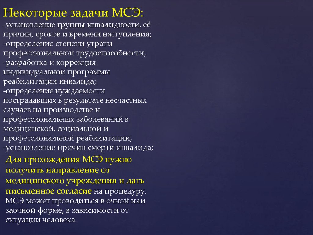 Некоторые задачи МСЭ:-установление группы инвалидности, её