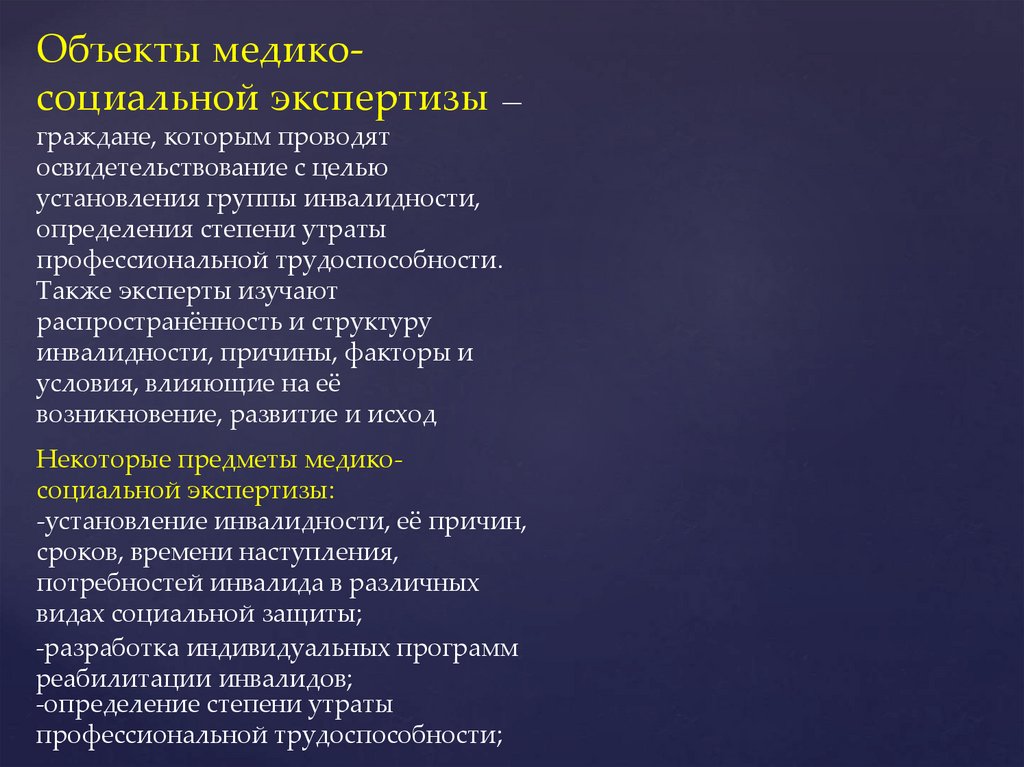 Объекты медикосоциальной экспертизы —граждане, которым проводят