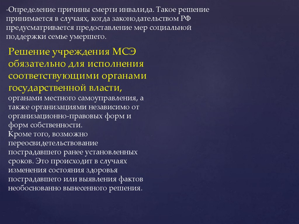 -Определение причины смерти инвалида. Такое решениепринимается в случаях, когда законодательством РФ