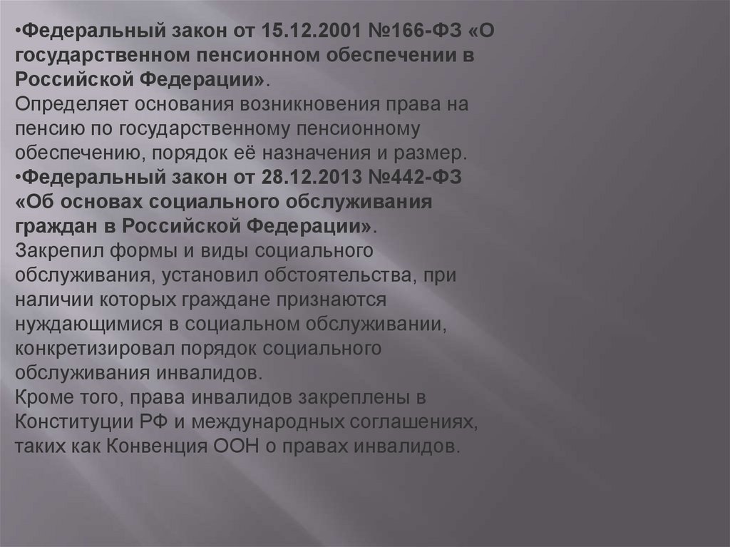 •Федеральный закон от 15.12.2001 №166-ФЗ «Огосударственном пенсионном обеспечении в
