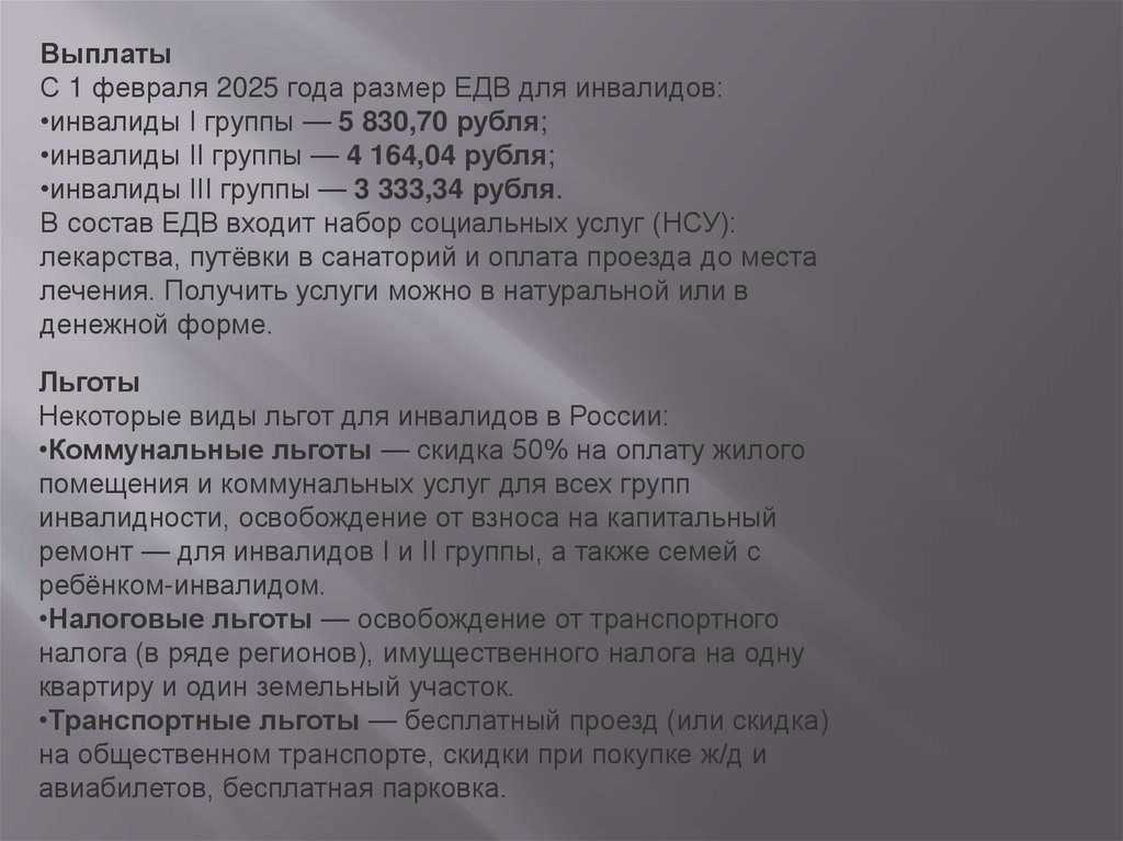 ВыплатыС 1 февраля 2025 года размер ЕДВ для инвалидов: