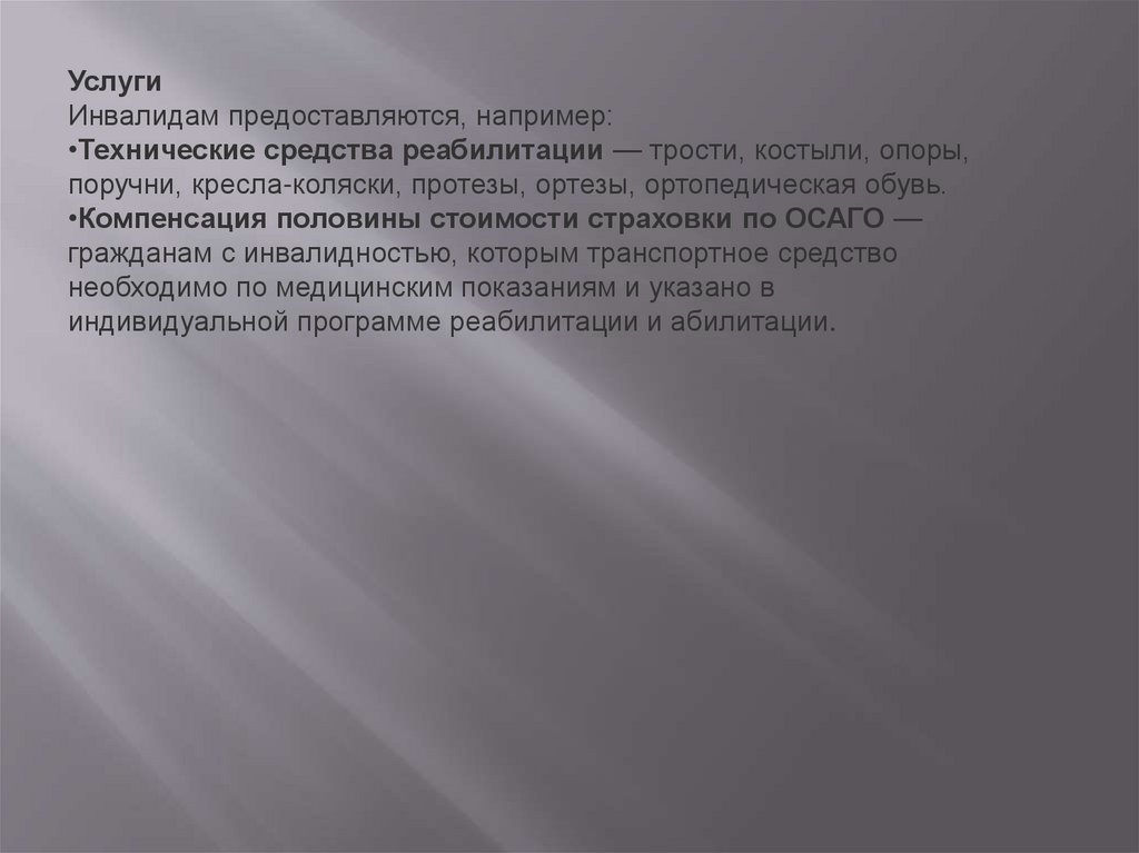 УслугиИнвалидам предоставляются, например:
