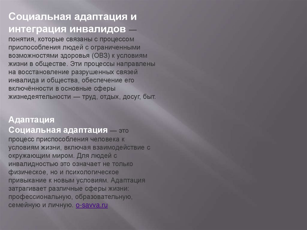 Социальная адаптация иинтеграция инвалидов —