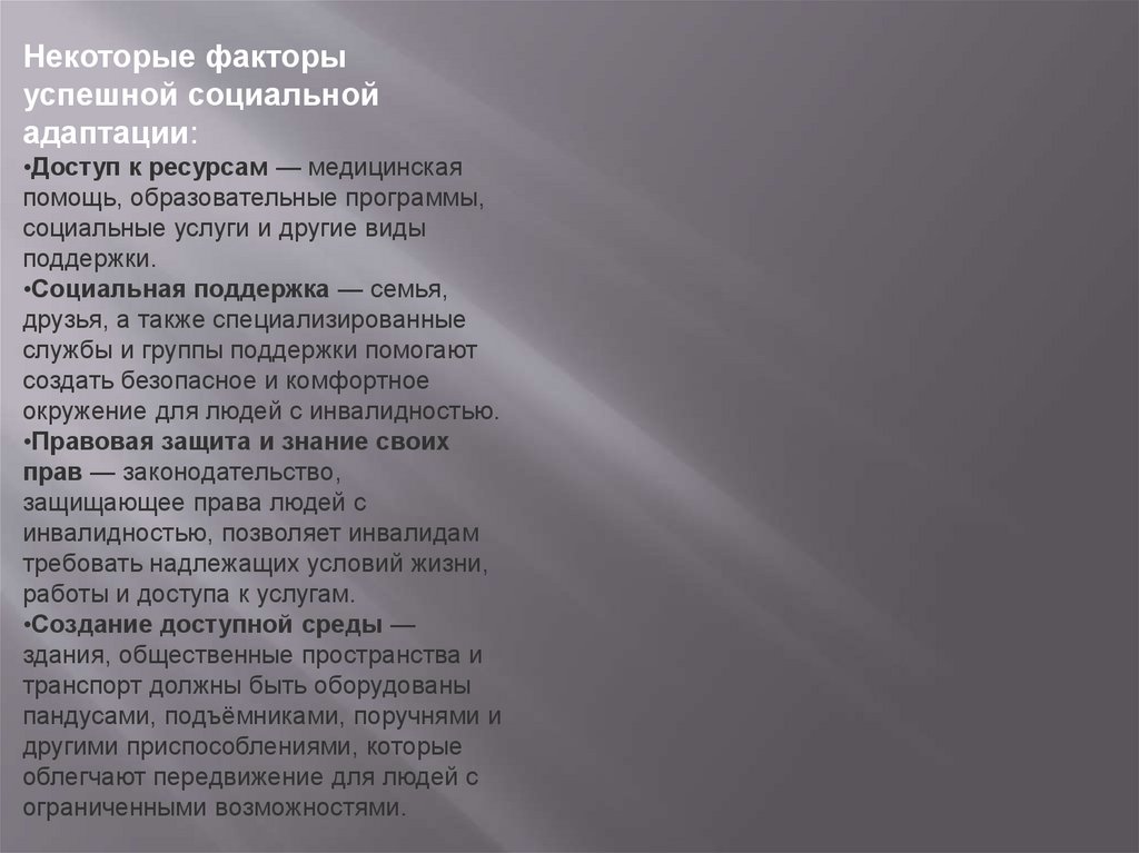 Некоторые факторыуспешной социальной