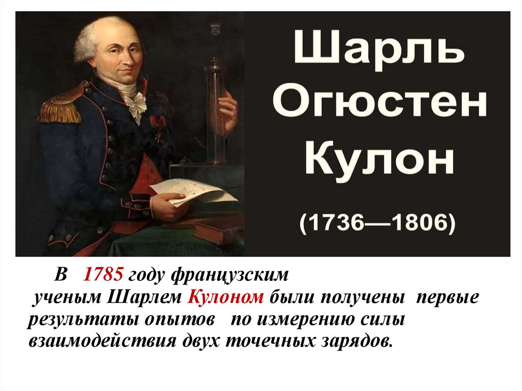 В 1785 году французскимученым Шарлем Кулоном были получены первые