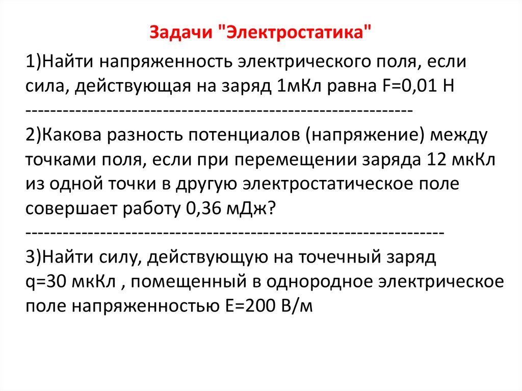 Задачи "Электростатика"1)Найти напряженность электрического поля, если