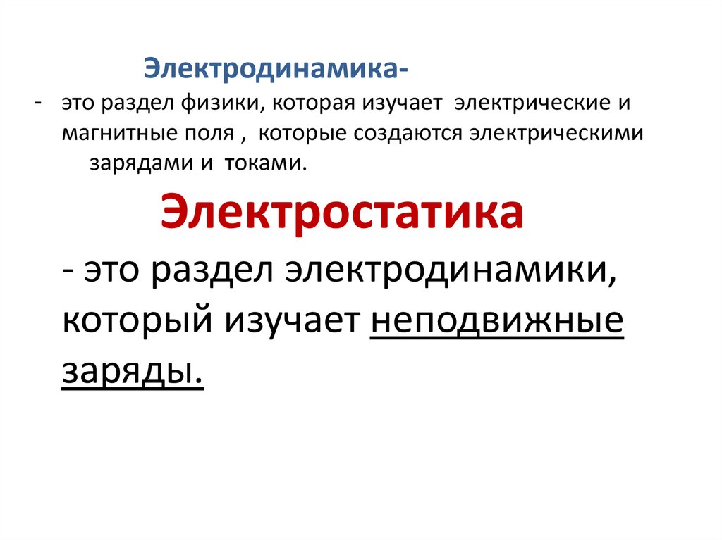 Электродинамика- это раздел физики, которая изучает электрические имагнитные поля , которые создаются электрическими
