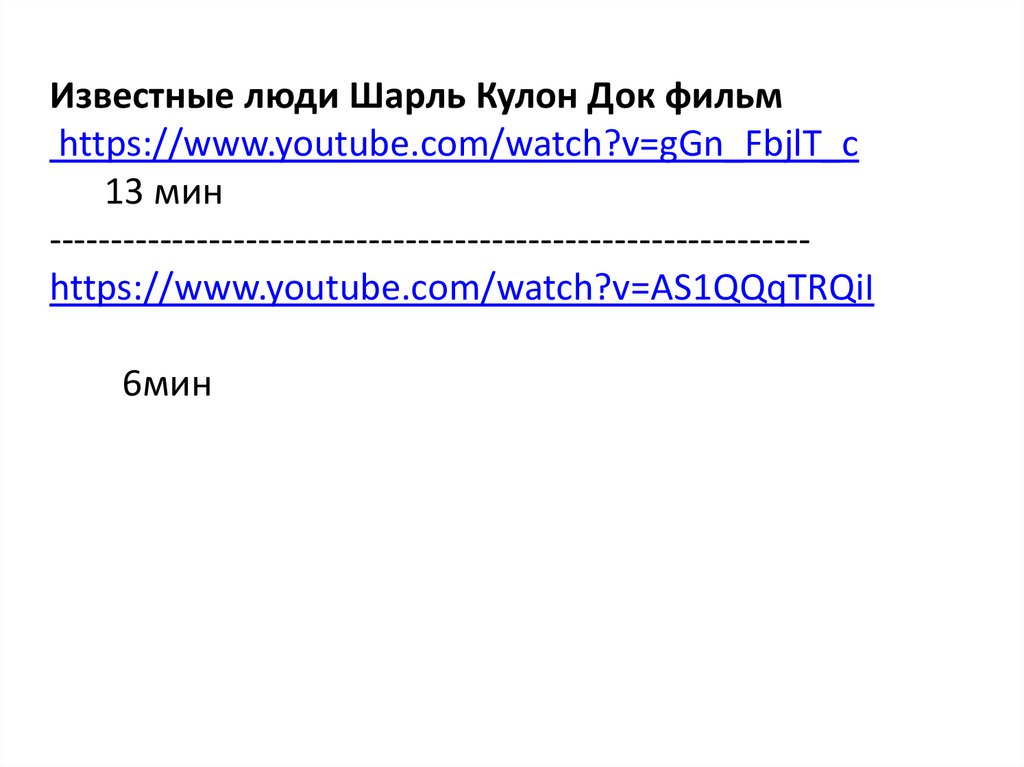 Известные люди Шарль Кулон Док фильмhttps://www.youtube.com/watch?v=gGn_FbjlT_c