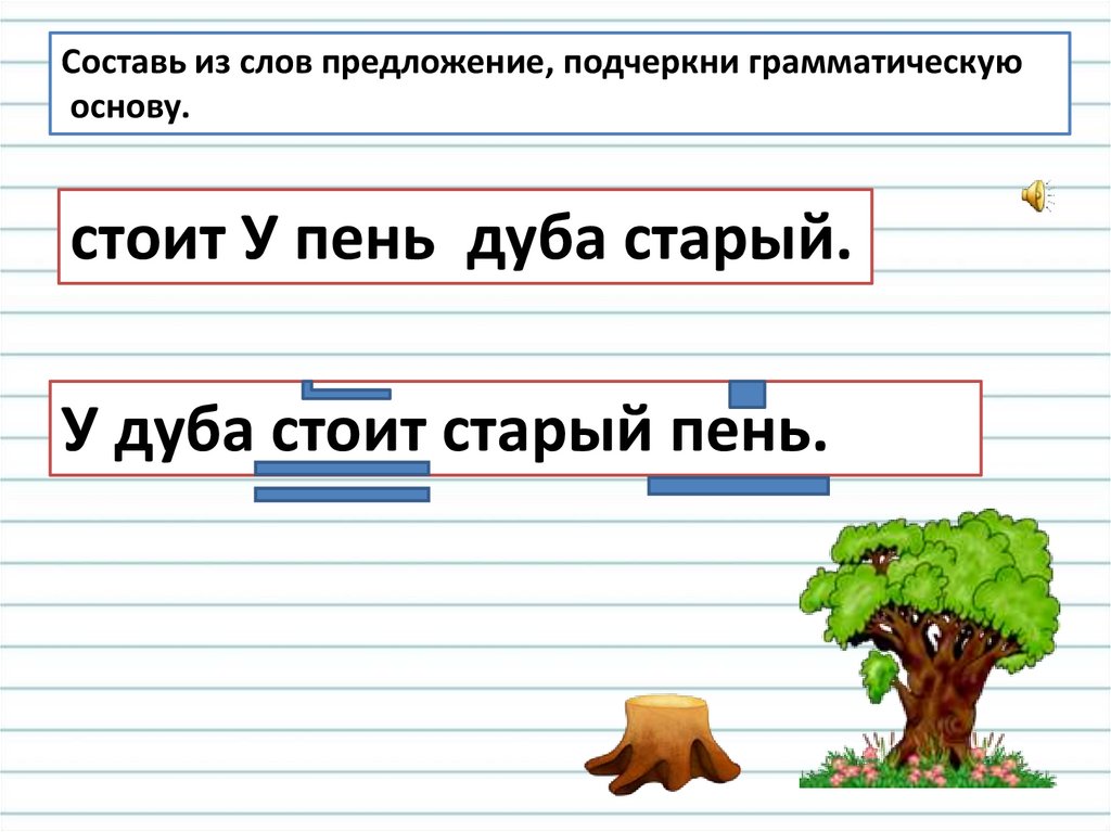 Составь из слов предложение, подчеркни грамматическуюоснову.