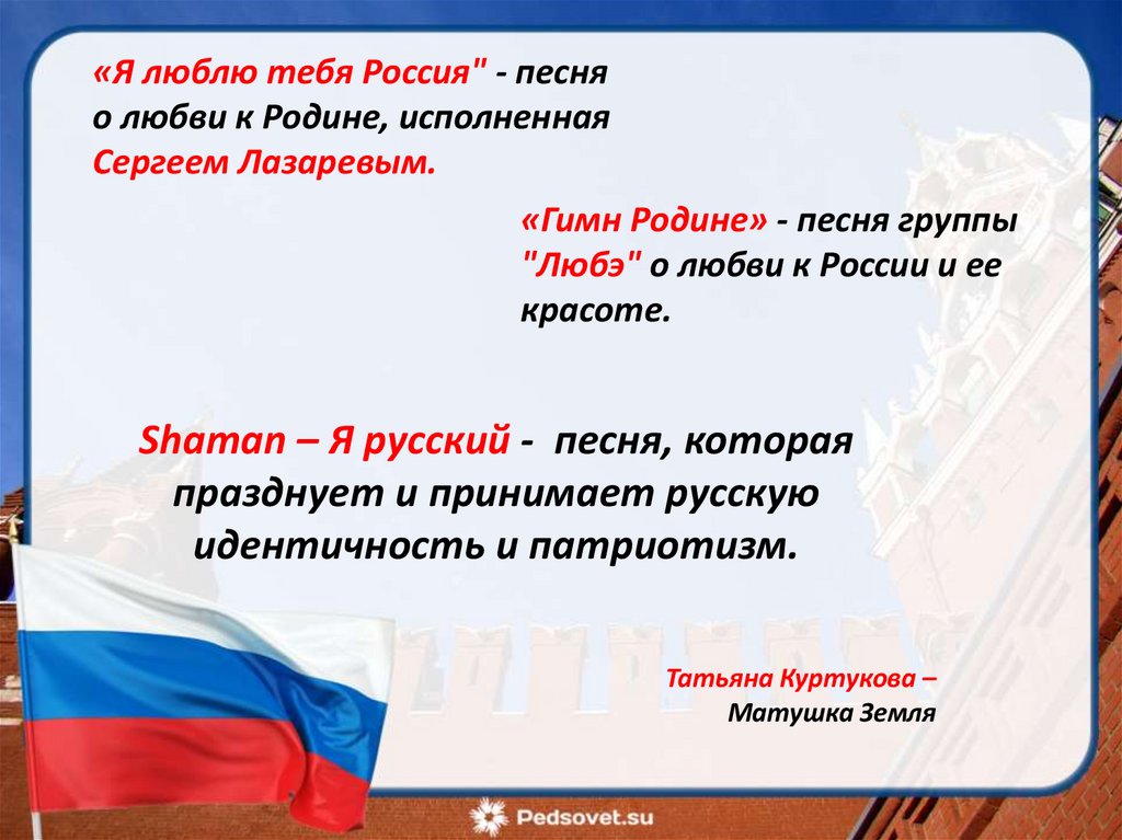 «Я люблю тебя Россия" - песняо любви к Родине, исполненная