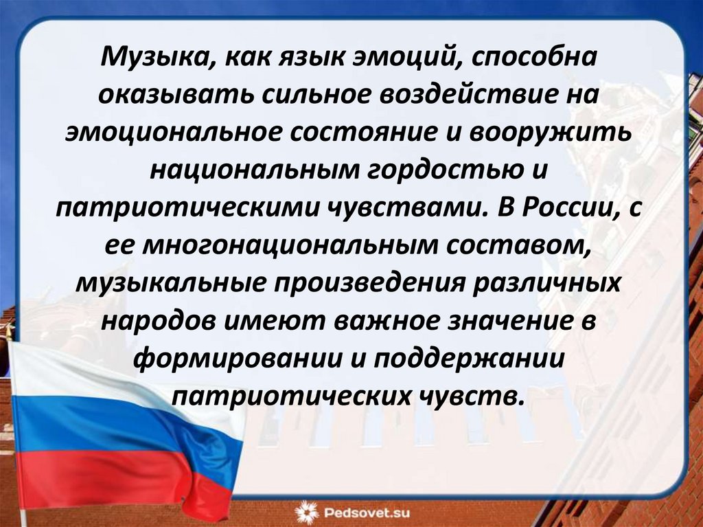 патриотических чувств. Музыка играет