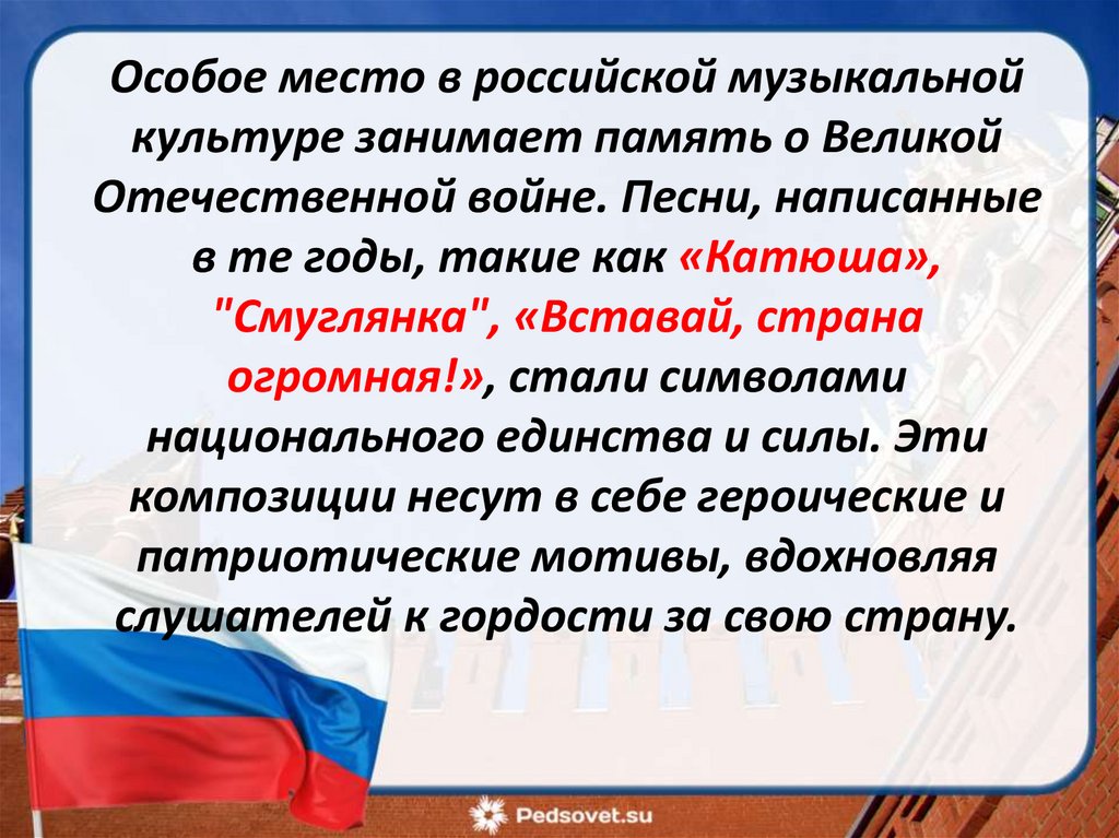 Особое место в российской музыкальнойкультуре занимает память о Великой