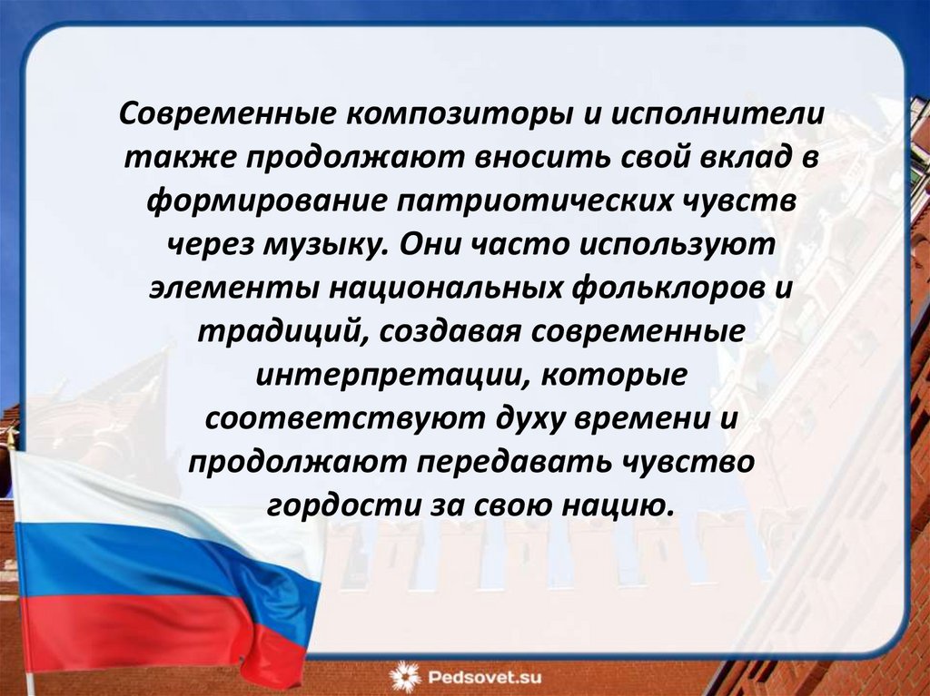 слушателей к гордости за свою страну.