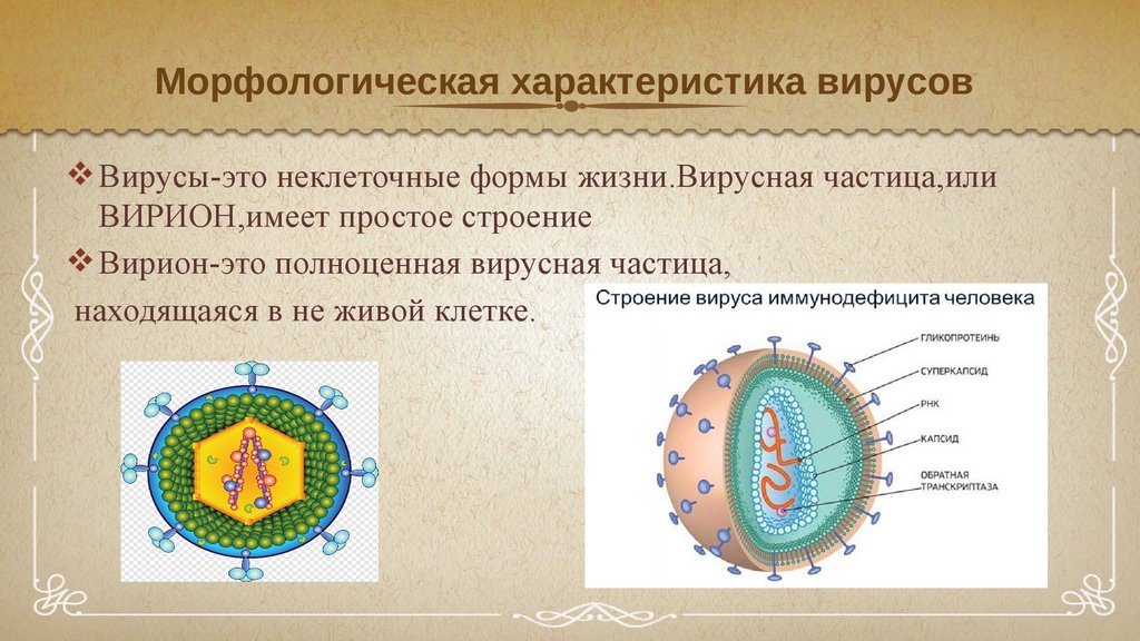 Морфологическая характеристика вирусовВирусы-это неклеточные формы жизни.Вирусная частица,или