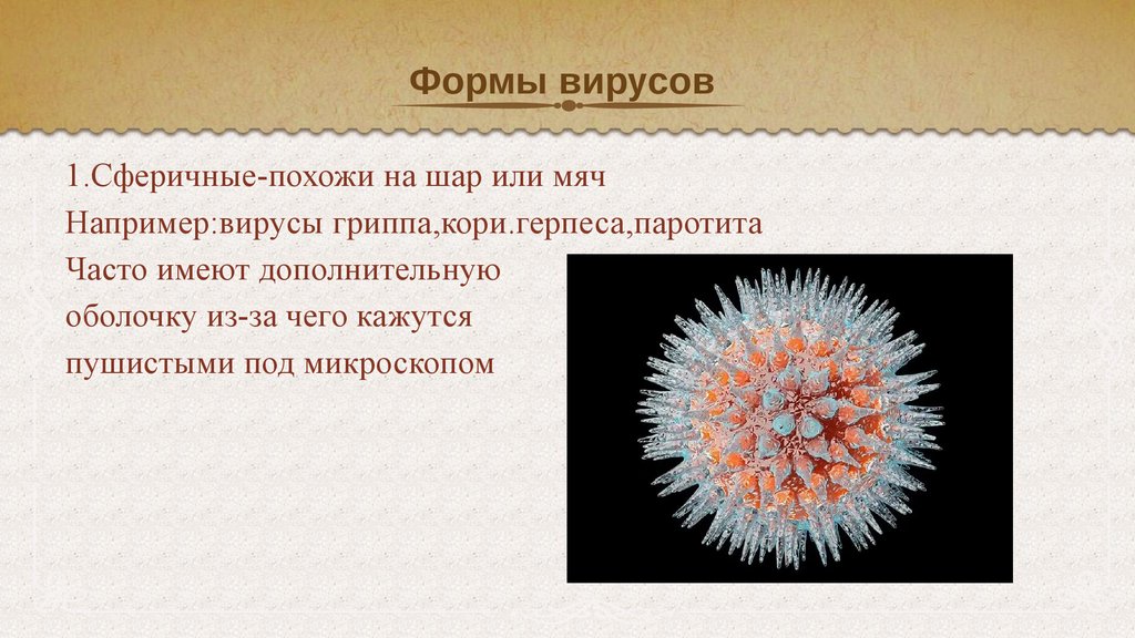 Формы вирусов1.Сферичные-похожи на шар или мяч