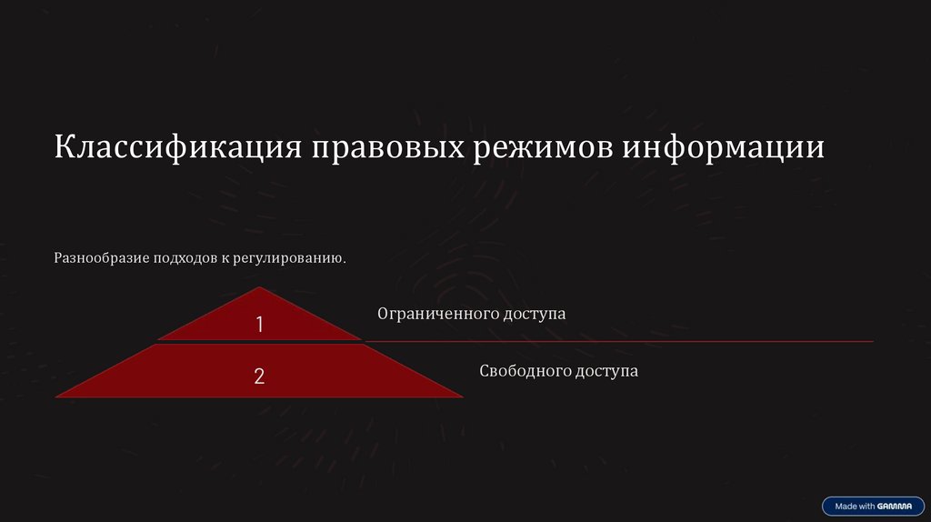 Классификация правовых режимов информацииРазнообразие подходов к регулированию.