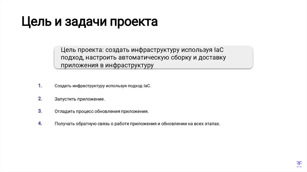 Цель и задачи проектаЦель проекта: создать инфраструктуру используя IaC