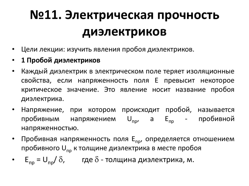1. №11. Электрическая прочность диэлектриков