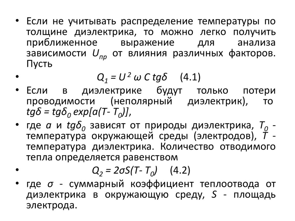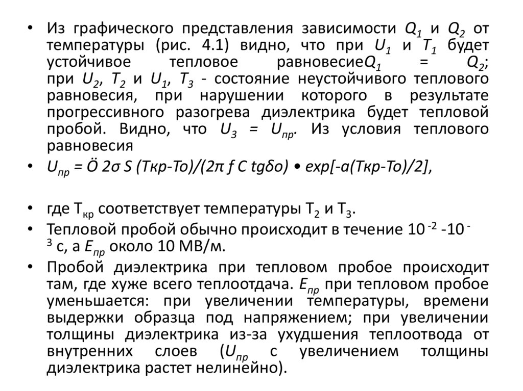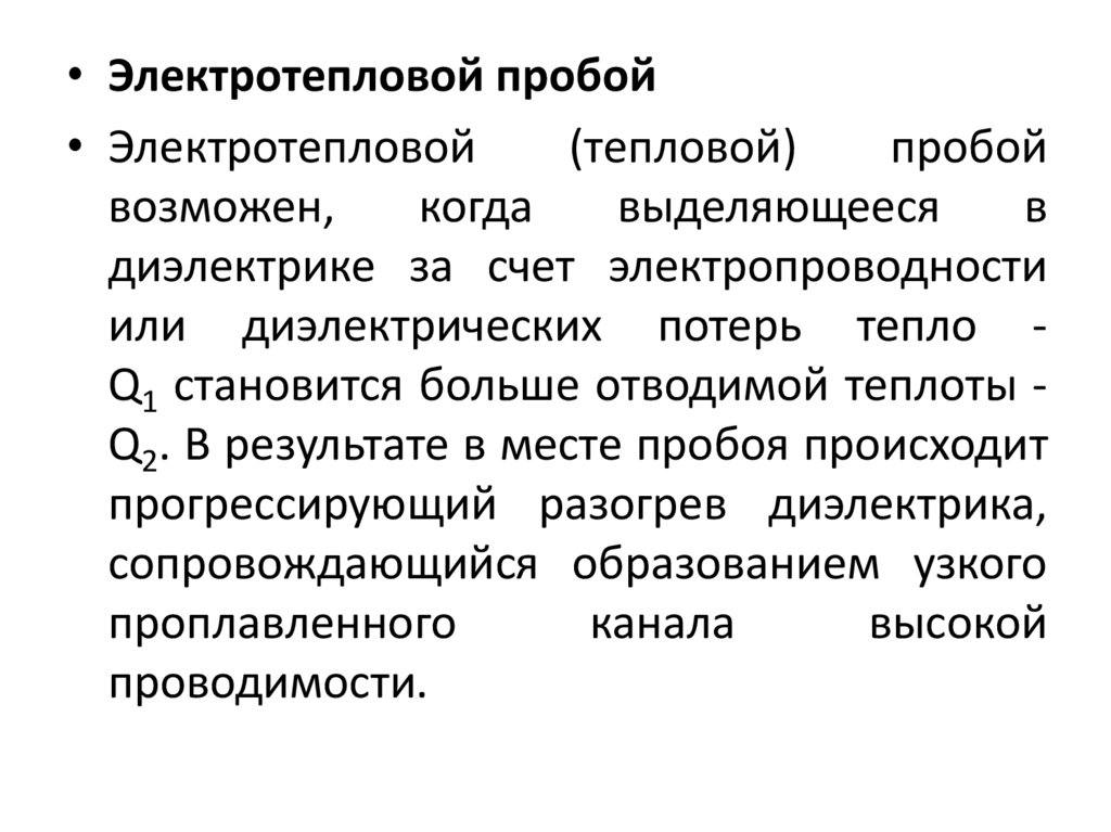 • Пробой диэлектрика при тепловом пробое происходит