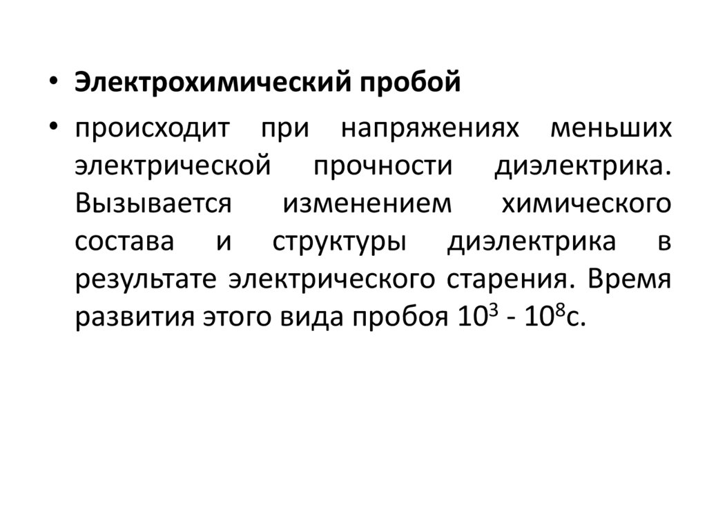 • Электрохимический пробой• происходит при напряжениях меньших