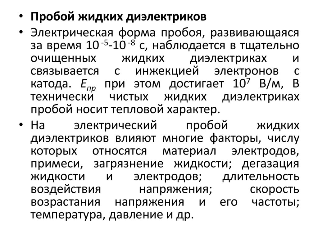 осложняет явление пробоя жидких диэлектриков.