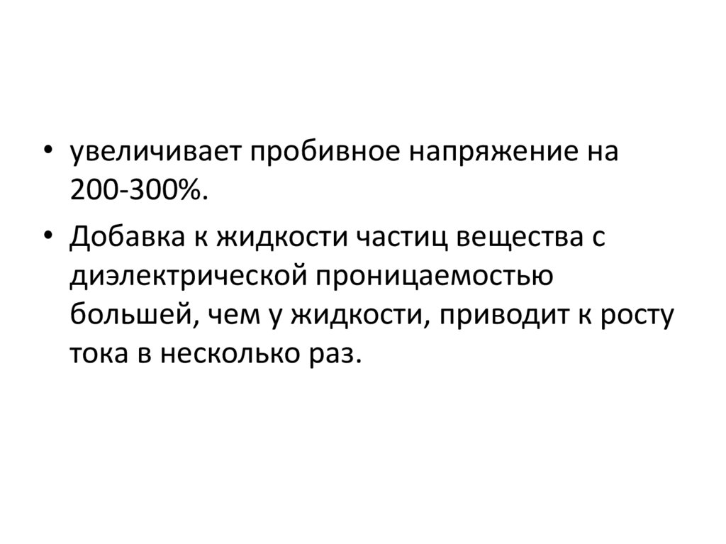 • Жидкие диэлектрики обладают более высокой электрической