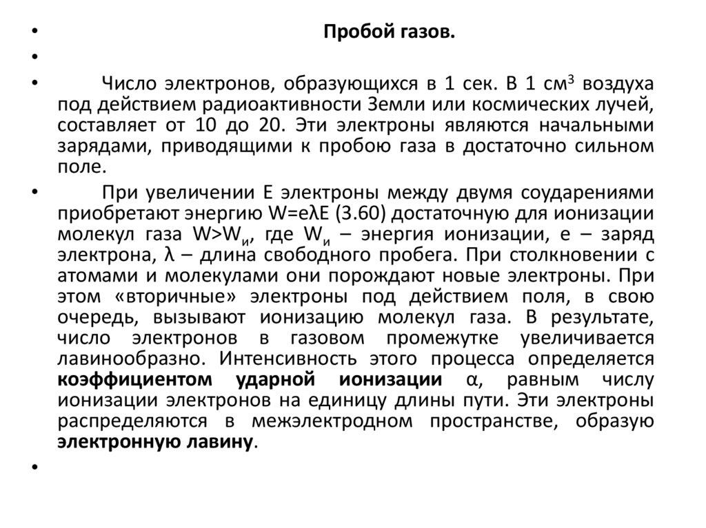 приобретают энергию W=eλE (3.60) достаточную для ионизации