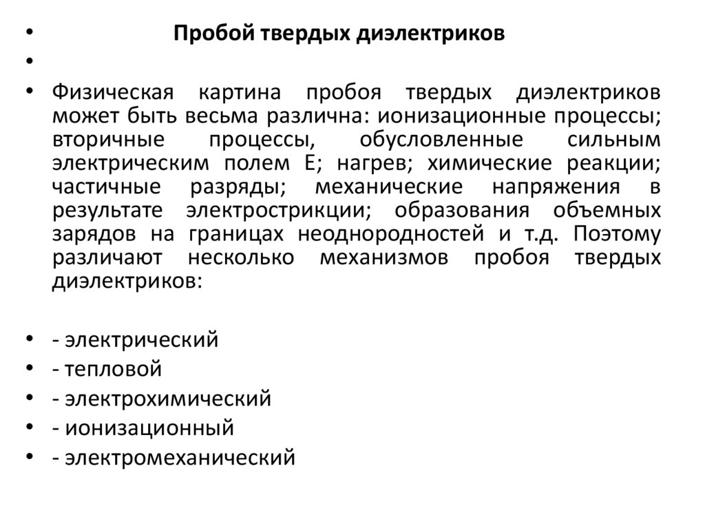 • Механизм пробоя газообразных, жидких и твердых диэлектриков