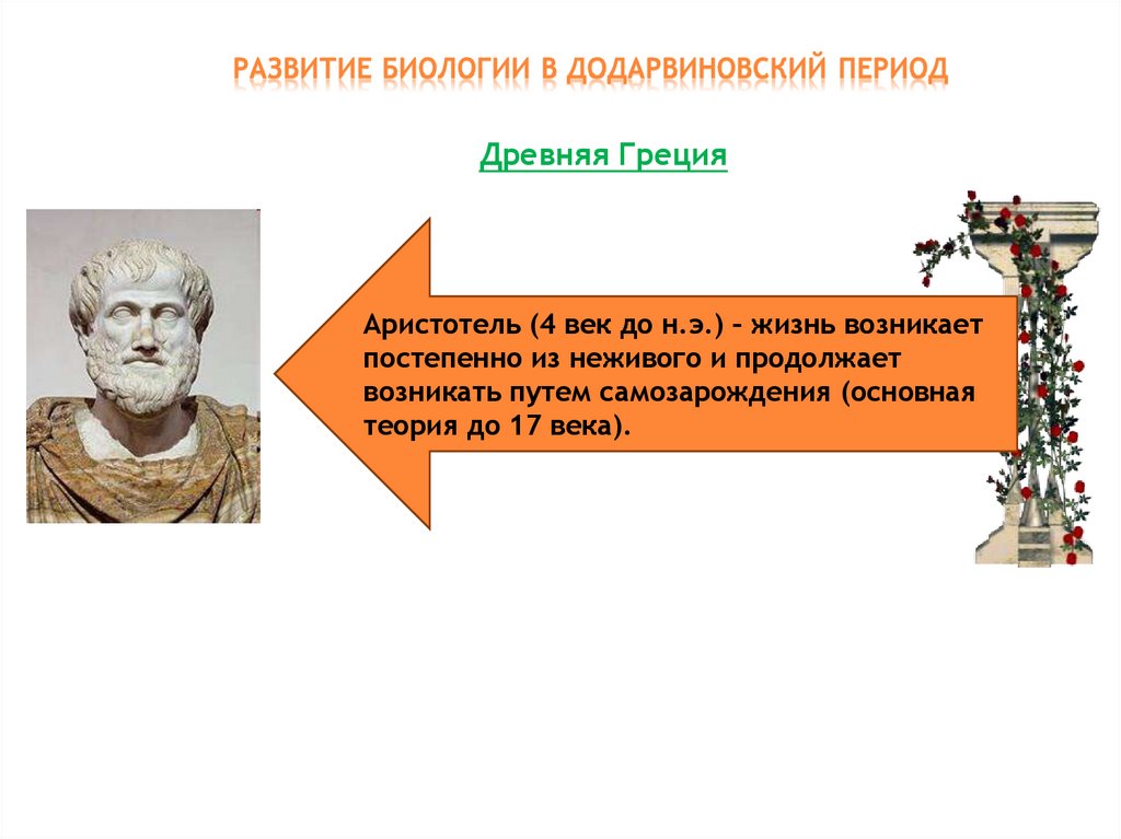 Древняя ГрецияАристотель (4 век до н.э.) – жизнь возникает