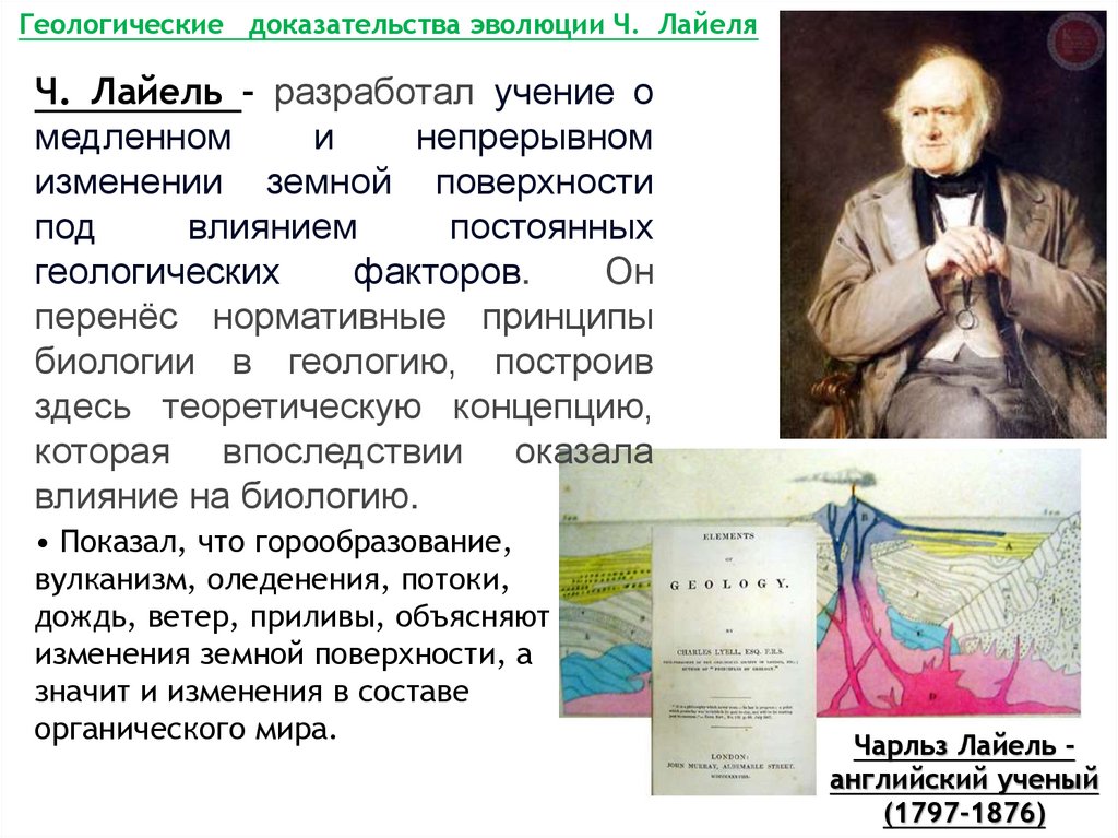 Геологические доказательства эволюции Ч. ЛайеляЧ. Лайель – разработал учение о