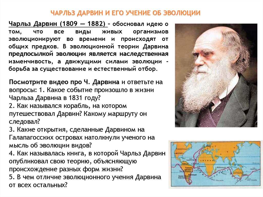 Посмотрите видео про Ч. Дарвина и ответьте на