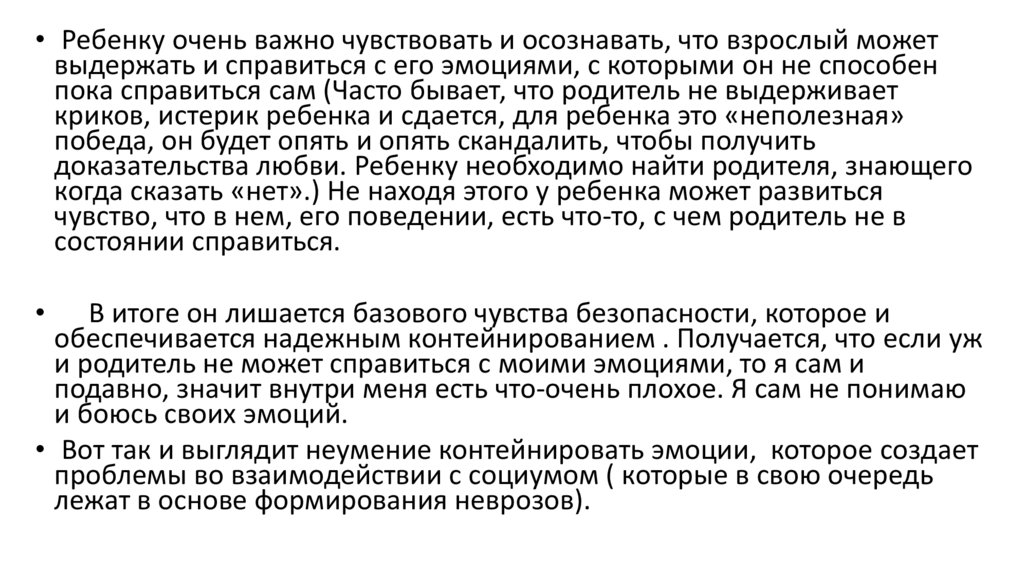 • Ребенку очень важно чувствовать и осознавать, что взрослый можетвыдержать и справиться с его эмоциями, с которыми он не способен