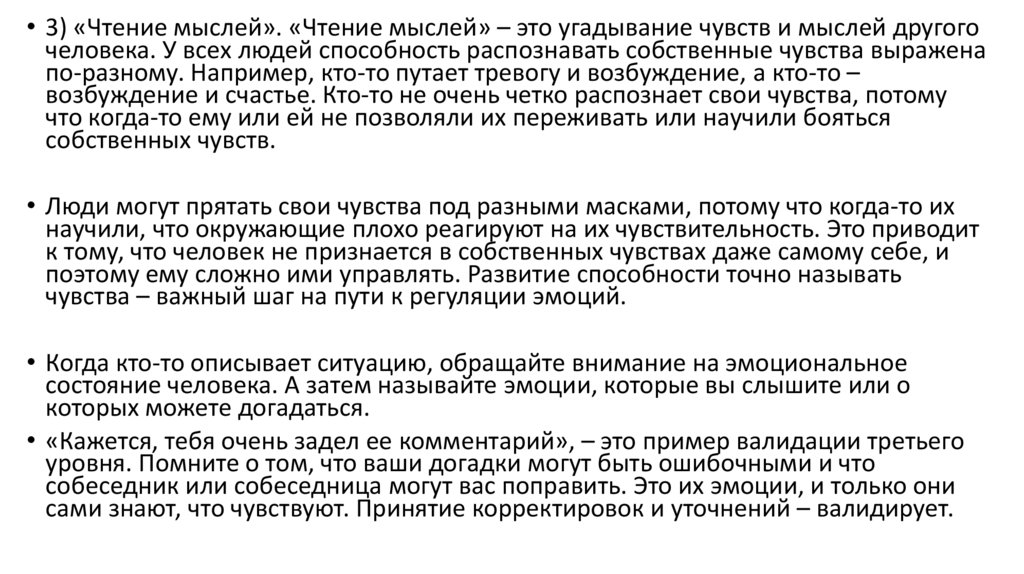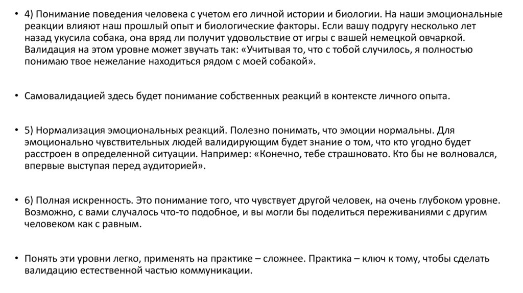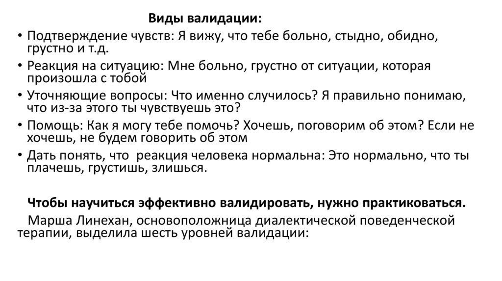 • Иногда валидация этого уровня помогает разобраться в мыслях и