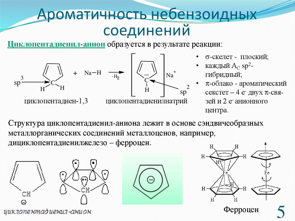 Структура циклопентадиенил-аниона лежит в основе сэндвичеобразных
