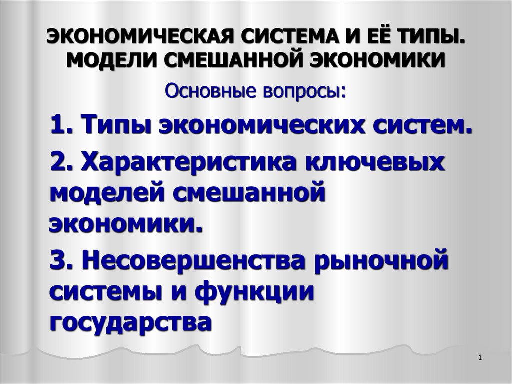 1. ЭКОНОМИЧЕСКАЯ СИСТЕМА И ЕЁ ТИПЫ. МОДЕЛИ СМЕШАННОЙ ЭКОНОМИКИ