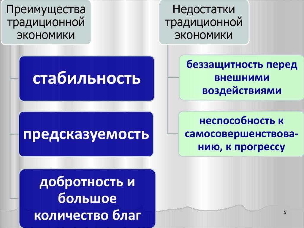 4. Традиционная экономика – экономическая система, опирающаяся на общинную собственность на средства производства и произведенный