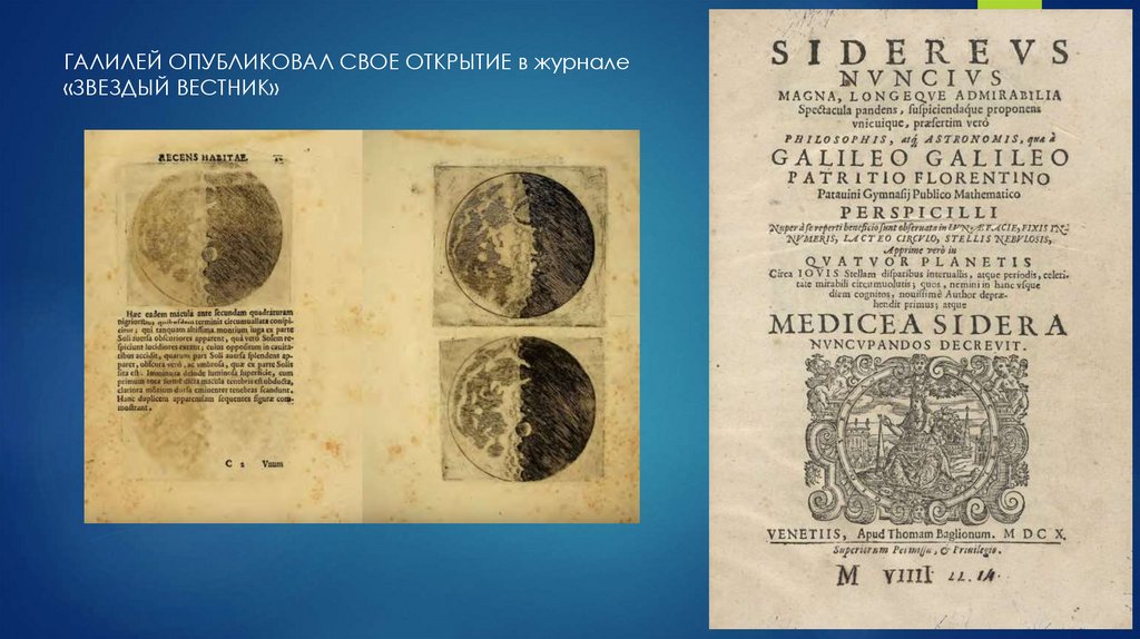 ГАЛИЛЕЙ ОПУБЛИКОВАЛ СВОЕ ОТКРЫТИЕ в журнале«ЗВЕЗДЫЙ ВЕСТНИК»