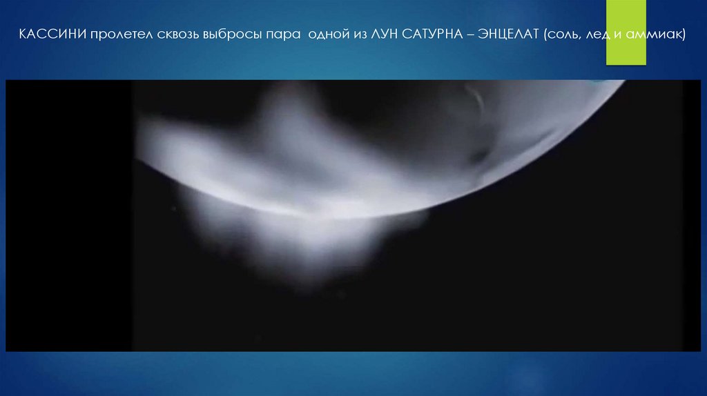 КАССИНИ пролетел сквозь выбросы пара одной из ЛУН САТУРНА – ЭНЦЕЛАТ (соль, лед и аммиак)22.