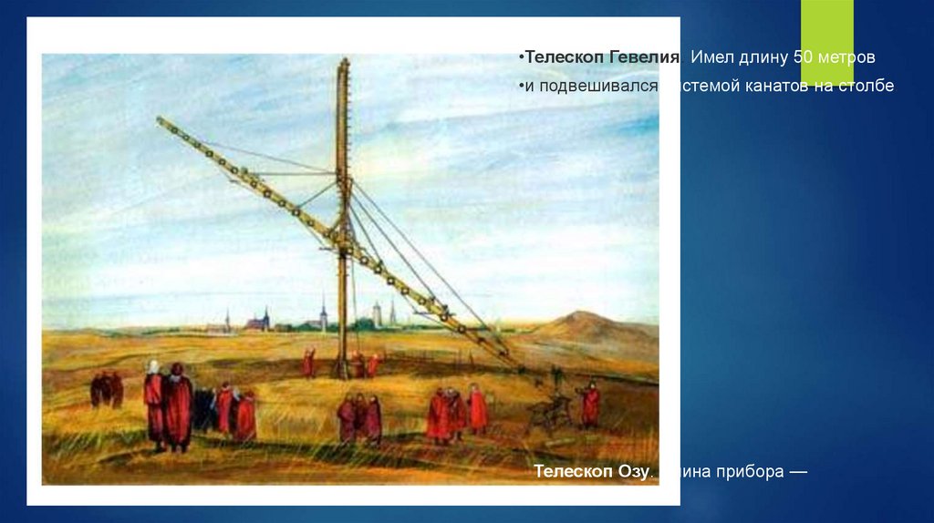•Телескоп Гевелия. Имел длину 50 метров•и подвешивался системой канатов на столбе.