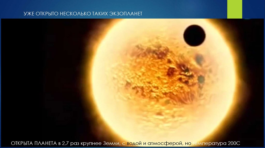 УЖЕ ОТКРЫТО НЕСКОЛЬКО ТАКИХ ЭКЗОПЛАНЕТОТКРЫТА ПЛАНЕТА в 2,7 раз крупнее Земли, с водой и атмосферой, но температура 200С